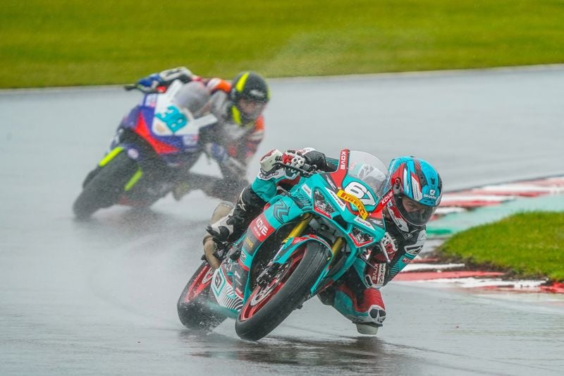 Casey O’Gorman led the way as the Sportbike class headed out for its second run of the day in heavy rain, leading the session by more than a second over Adon Davie.